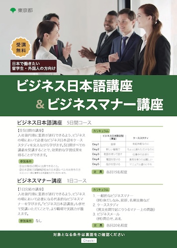 ビジネス日本語講座(5日間)についてはすべて定員に達したため募集を締め切りました。